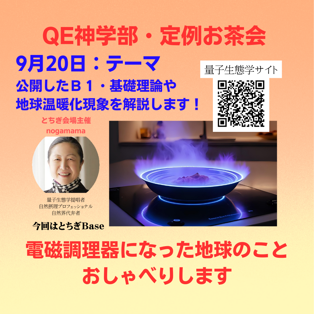 日常生活に即した視点の量子生態学を学びながら、おしゃべりを楽しみながら、参加者の皆様は是非、人生を進化させてください。